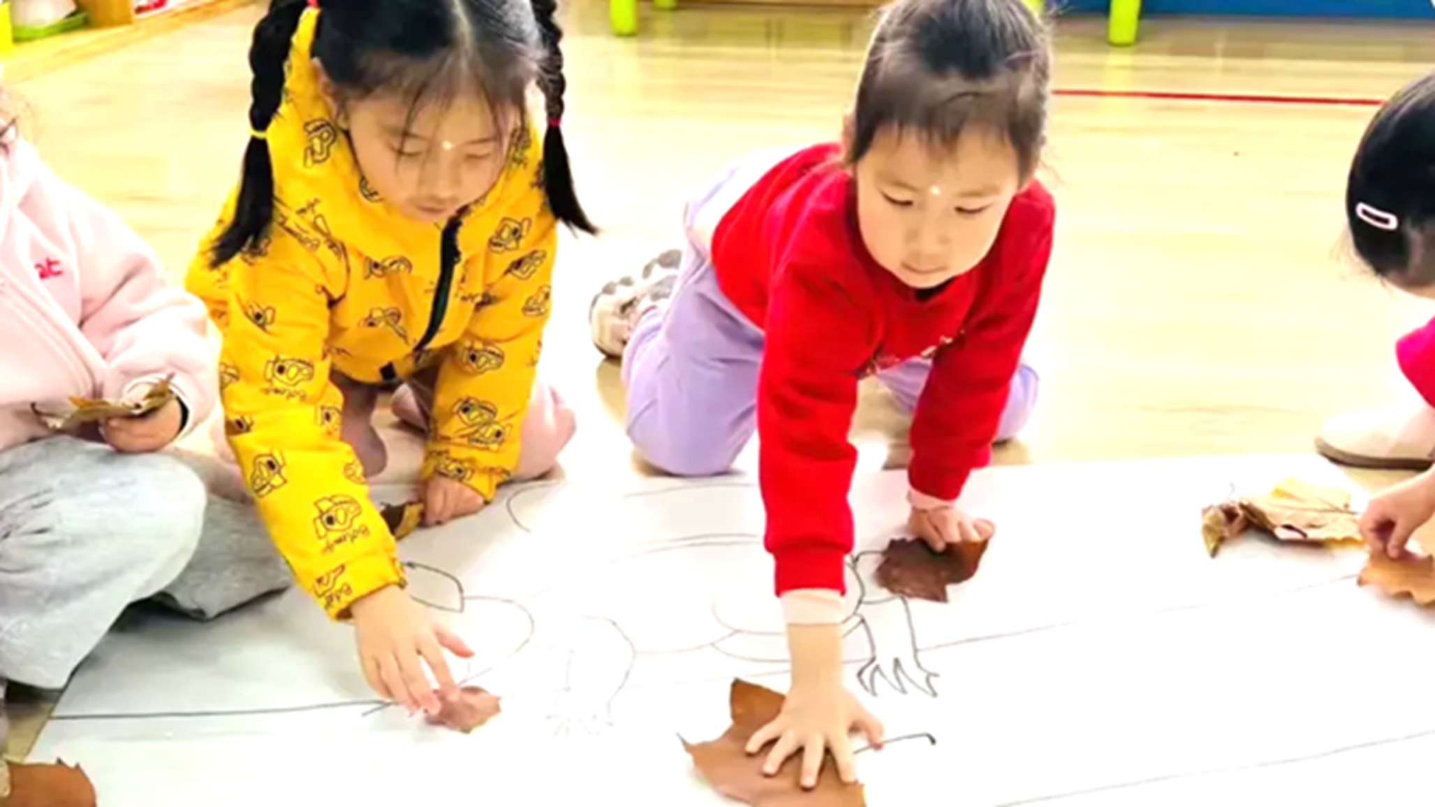 孩子们用树叶叠出圆滚滚的小刺猬,每一片落叶都在他们手中获得新生,每一笔粘贴都藏着天马行空的想象,原本散落的秋景,就这样变成了生动的童话。