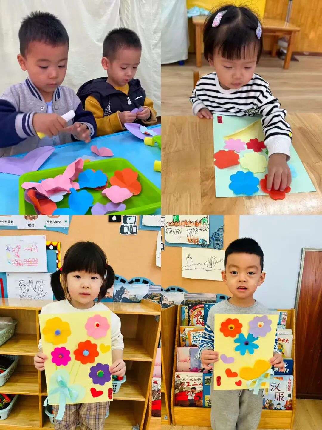 托小班的弟弟妹妹们虽然年纪小,但动手能力可不含糊。宝贝们把花瓣一片一片粘起来,变成了一朵朵五颜六色的小花。最后把这些小花扎成一束束花束,每一朵都藏着对爸爸妈妈的爱呢, 你看他们认真的小模样,是不是超棒。
