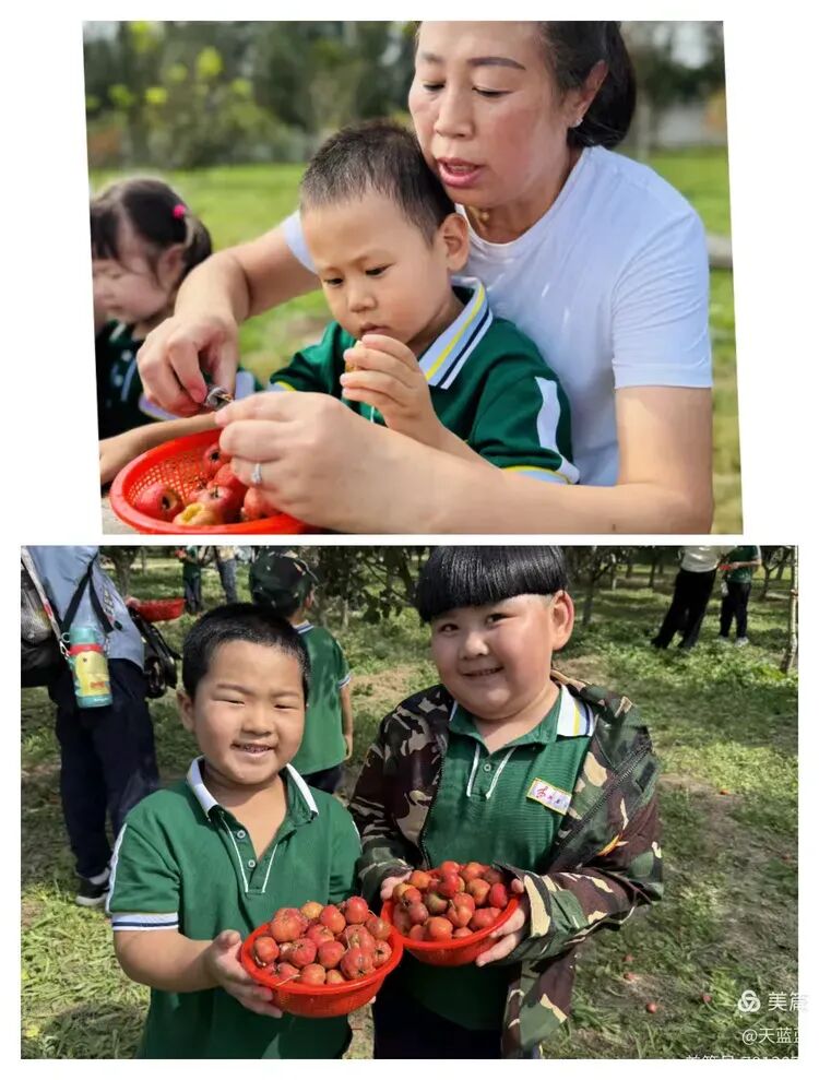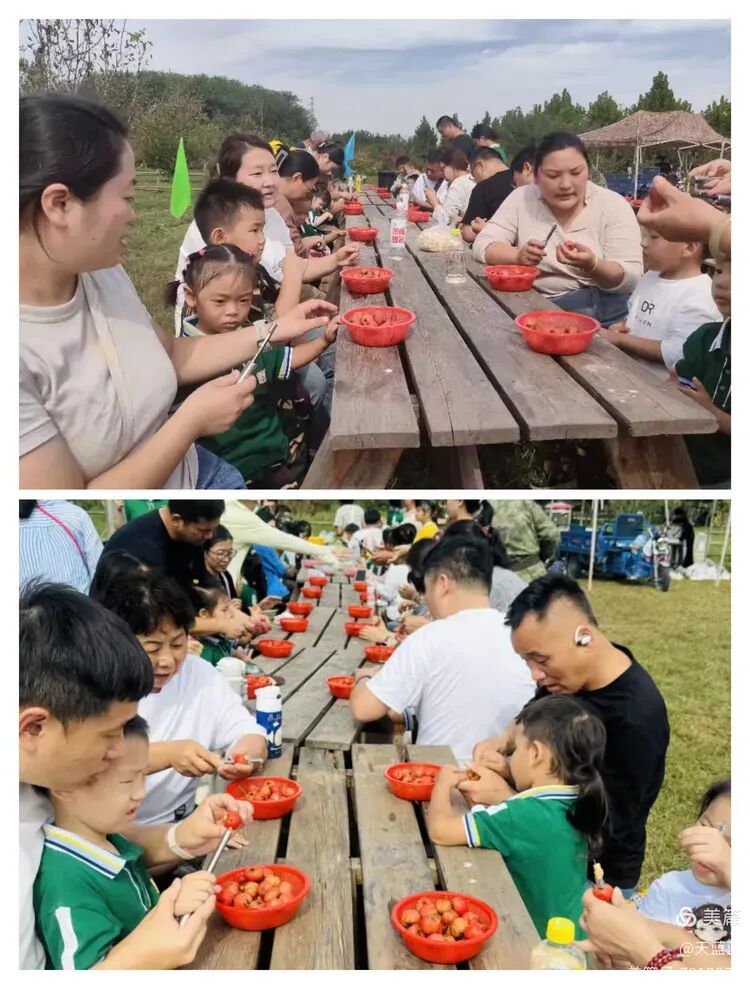 午后阳光温柔,孩子们与家长动手制作山楂罐头。看,孩子们从采摘到专注去核,很认真,也很专注。当果核剔净,圆润果肉如秋日勋章。这不仅是味觉的收获,更是耐心与协作的甜蜜积累,是亲子合作最动人的成果。
