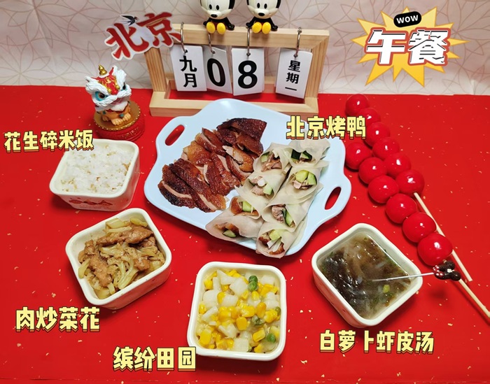 系列特色饮食活动走进 —— 北京站即将收官。 于是, 以童真味蕾为标尺🌱, 各班级娃娃们投票, 在一众京味美食中选出最爱🩷 9月最爱是——北京烤鸭。